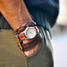 - En complément de la montre ou simplement comme accessoire de base, vous pouvez choisir bracelet au bras, après tout, les bracelets en cuir sont très populaires depuis plusieurs saisons. Il peut s'agir d'accessoires faits à la main ou de produits d'entreprises connues ou peu connues qui fabriquent des produits similaires.