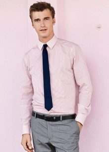 - Cravate unie combiné avec une chemise dans une petite cellule ou à rayures. La couleur du produit et les nuances de la bande ou de la cellule doivent être en harmonie et ne pas être contrastées.