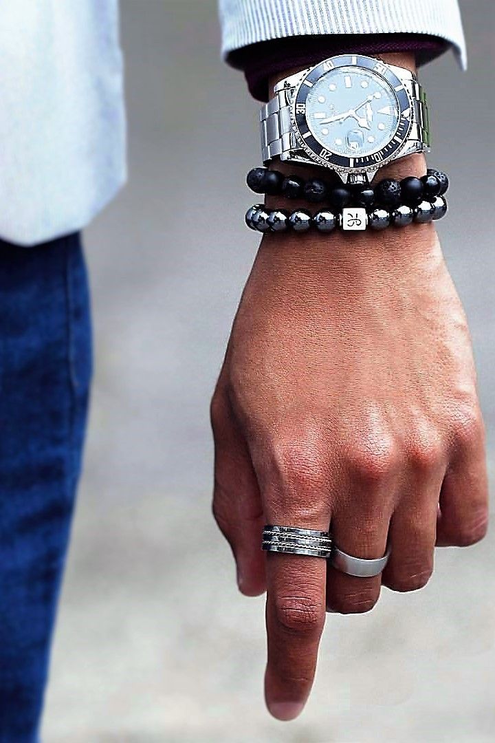 Les bagues peuvent être de différentes tailles, couleurs, styles. Alliance est une décoration symbolique laconique qui conviendra dans n'importe quelle situation et sous n'importe quelle tenue. En plus de l'alliance, les hommes peuvent porter d'autres bagues en même temps... Si les gars brutaux préfèrent doigts avec des crânes, alors pour un style décontracté il vaut mieux choisir modèles sans fioritures.