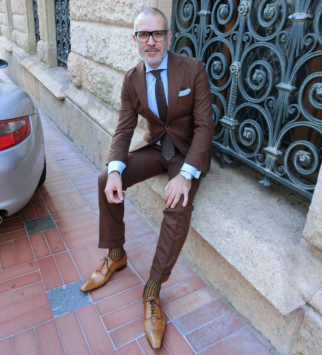 - À brun le costume doit choisir des chaussettes brunes ou beiges;