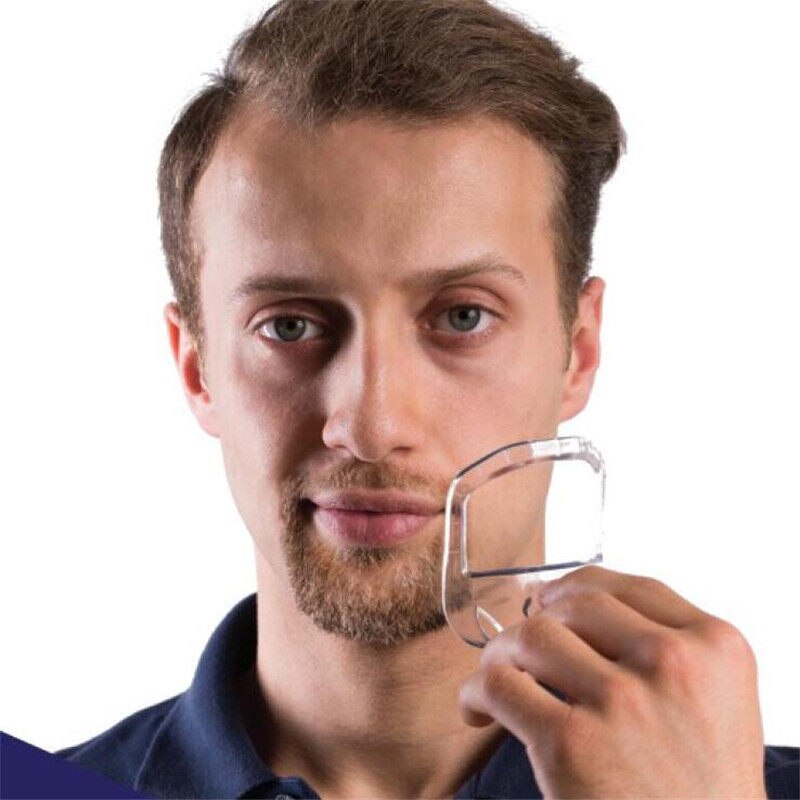 يجب أولاً تعديل الأداة بنفسك بحيث تتطابق تمامًا مع الخطوط العريضة للحية المستقبلية. للقيام بذلك ، يتم تطبيق الأداة على الفم وتثبيتها بالأسنان ، مع عض قطعة فم خاصة. ستبقى الشعيرات الموجودة أسفل القالب سليمة. والنباتات غير الضرورية التي تتجاوز حدودها تُحلق بشفرة حلاقة عادية أو تقطع إلى الطول المطلوب. عادةً ما يتم استخدام مثل هذا الاستنسل للحلاقة الأولى ، وسيبدأ في الظهور تلقائيًا في المستقبل.