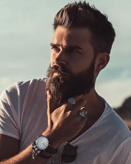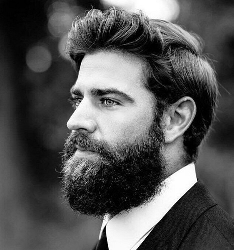 - مثلث مقلوب. اللحية الكثيفة مناسبة أيضًا للرجال الذين يعانون من هذا النوع من الوجه. في كثير من الأحيان يكملونها بسوالف عريضة.