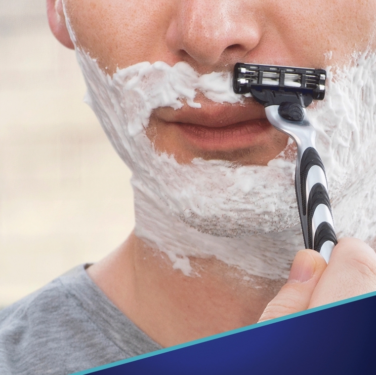 - Mach3 حساس. فولاذ حلاقة متين مع سطح مطلي بـ DLC.يتميز التكوين المحسن لآلة الحلاقة بشريط تشحيم بخلاصة الصبار لحلاقة مريحة وتقليل حساسية الجلد.