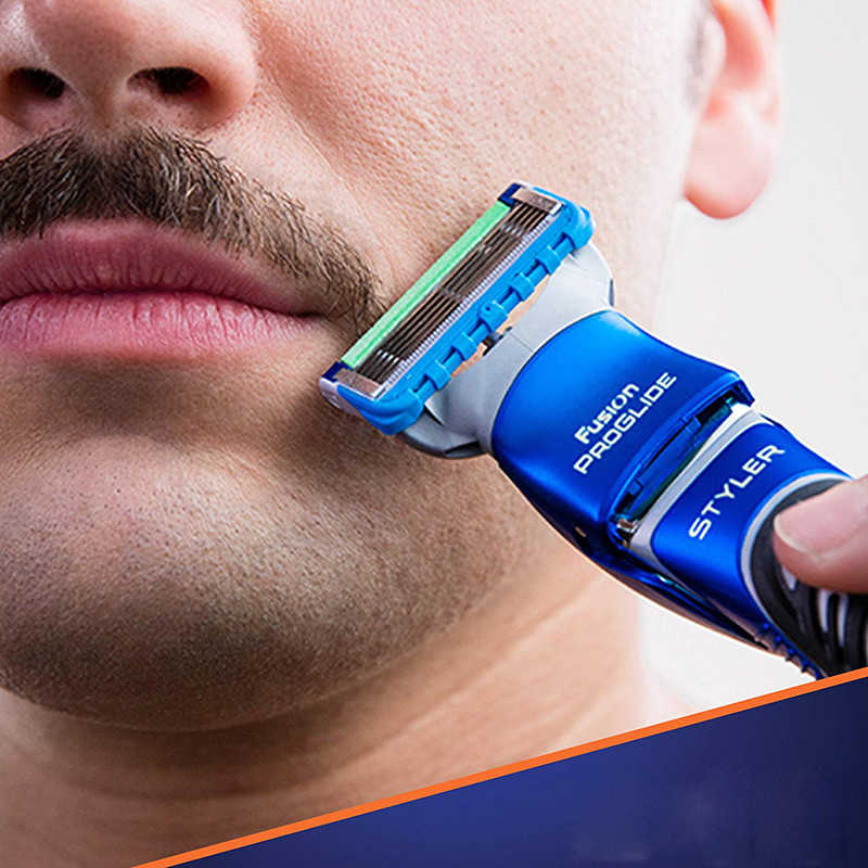 - ماكينة حلاقة جيليت فيوجن بروجليد ستايلر - واحدة من أفضل اختراعات العلامة التجارية ، والتي تتميز بتنوعها. يمكن استخدامه للحلاقة ، وتقليم الشارب واللحية ، وكذلك تقليم الشعر النامي وعلاج الإبطين. يتم تقديم هذا الجهاز في السوق كمجموعة ، والتي تشمل مقبض ، وماكينة شعر ، وشفرات حلاقة ، وبطاريات ، وحامل وحقيبة. تشمل مزايا أداة التشذيب المقدمة التصميم الأنيق والتنوع والحجم الصغير والكفاءة وسهولة الاستخدام. تشمل العيوب عدم وجود فرشاة لتنظيف مقصورة الشفرة وحلاقة طويلة عند إزالة اللحية الخفيفة السميكة. من حيث المبدأ ، ظهرت نماذج مماثلة من شفرات الحلاقة في السوق مؤخرًا ، ولكن منذ الدقائق الأولى تم الاعتراف بها من الرجال البالغين. عند تفعيلها ، تولد أداة التشذيب نبضات ناعمة واهتزازًا خفيفًا ، مما يوفر تأثيرًا انزلاقًا وتدليكًا سهلاً.