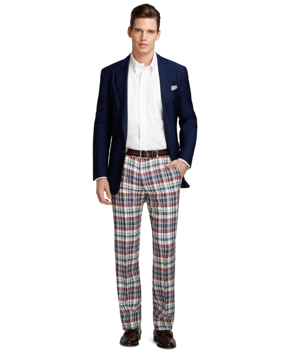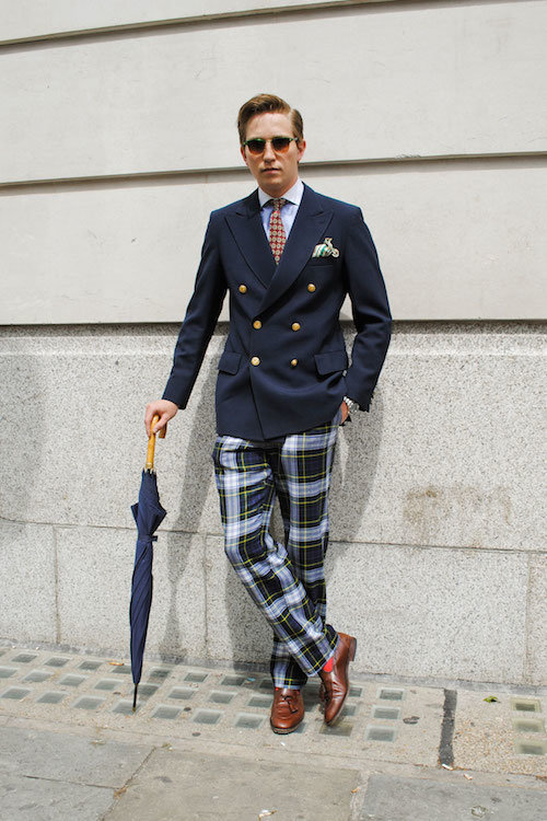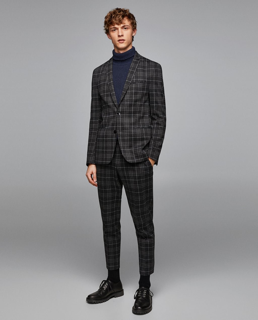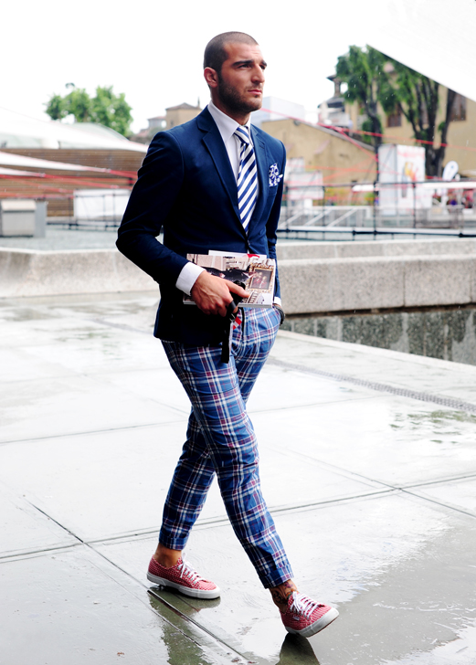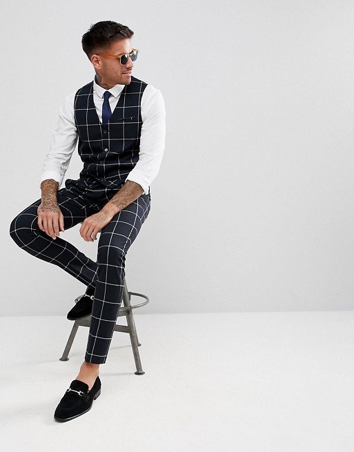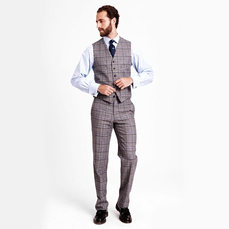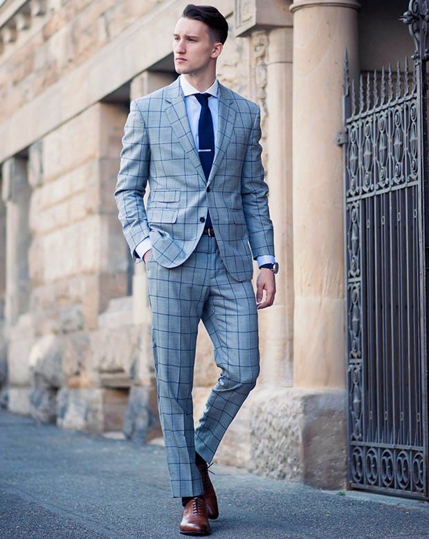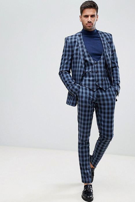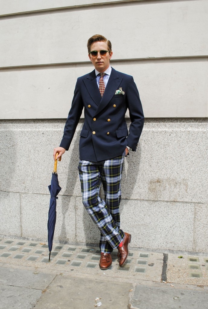 يبدو القفص مثيرًا للإعجاب للغاية ، ويتكون من خطوط من عدة ظلال من اللون الأزرق ، بينما تتناوب الخطوط الأضيق والأعرض عادةً. هذه البنطلونات هي نعمة حقيقية لقوس الأعمال ، خاصةً إذا كانت أضيق في الأسفل. إنها تشكل ترادفًا أنيقًا مع السترات الواقية من الرصاص والصدريات والقمصان العادية.