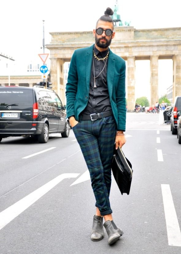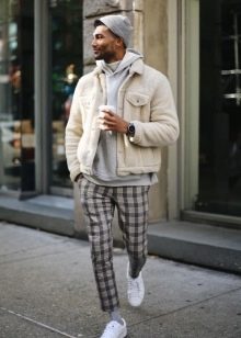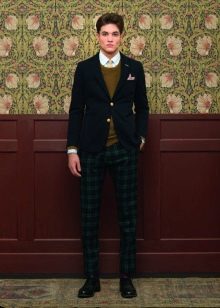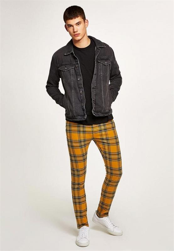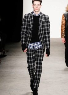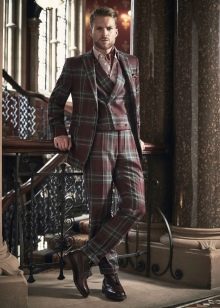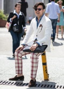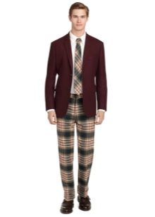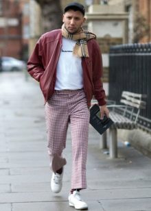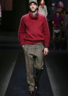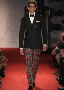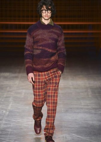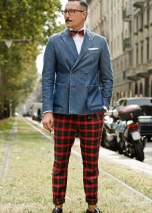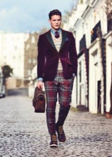 - اسكتلندي. لن تكون هذه المطبوعة مملة ورتيبة أبدًا ، لأنها تتضمن استخدام ألوان غنية ومجموعات غير تافهة وخطوط إزاحة بأحجام مختلفة. هناك رأي مفاده أن القفص الاسكتلندي مناسب فقط في خزانة ملابس الشباب. ولكن هذا ليس هو الحال. تبدو الطباعة الأنيقة أيضًا مذهلة على الرجال الناضجين ، وأهم شيء هنا هو اختيار شكل ولون البنطال بشكل صحيح.