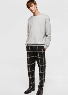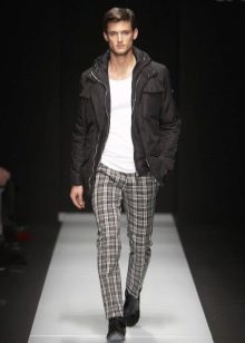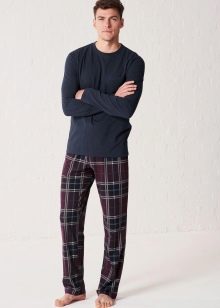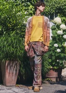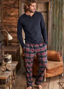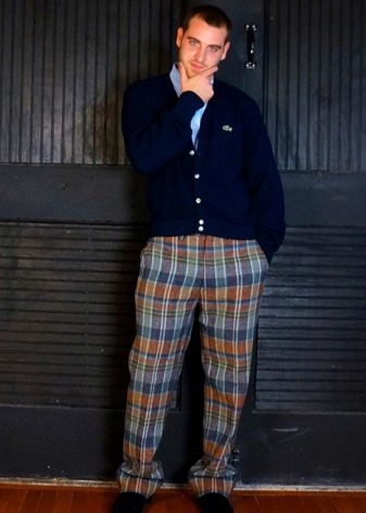 - محلي الصنع. لقد ولت الأيام التي كان يرتدي فيها الرجال "بلوزات" مريحة ذات خطوط أو حتى أردية تيري. يفضل الممثلون العصريون للجنس الأقوى ، حتى في بيئة غير رسمية ، أن يبدوا أنيقًا وأنيقًا. بالنسبة لهم ، قدم المصنعون مجموعة من السراويل المحبوكة والقطنية في قفص عصري. إذا كانت الألوان المقيدة مفضلة للخروج ، فمن الممكن تمامًا في المنزل إعطاء الأفضلية للمنتجات غير التافهة والمشرقة.