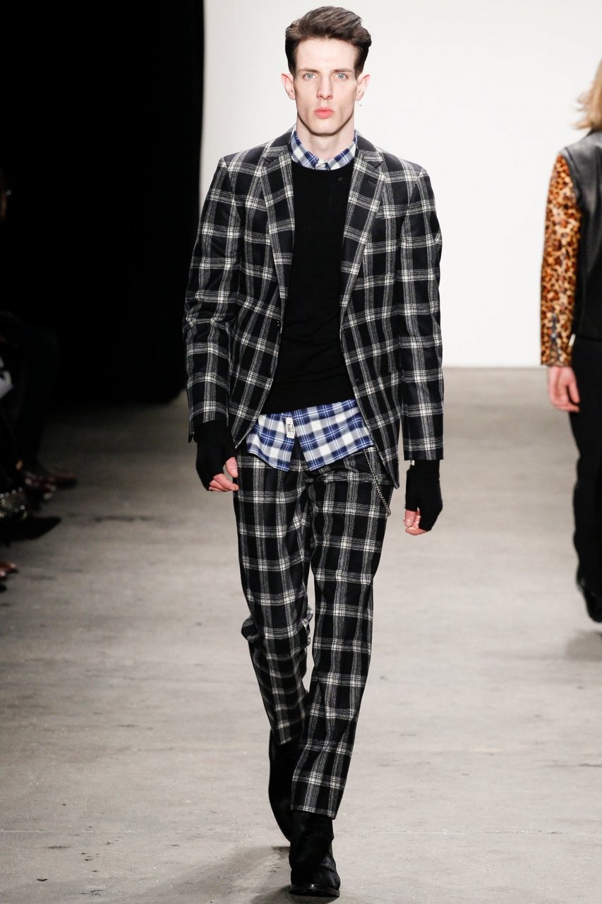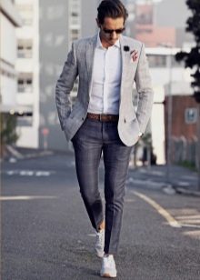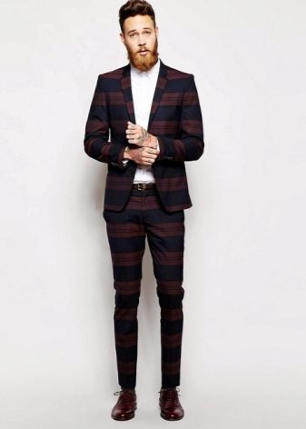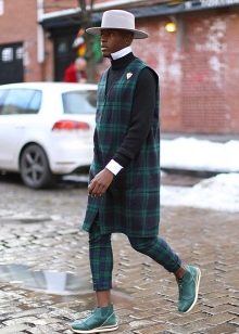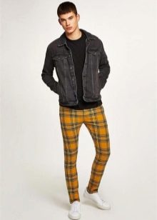 نهاية المظهر هي ربطة عنق لتتناسب مع القفص. يتم استخدام الحزام فقط إذا كانوا يخلقون نمطًا مكتبيًا ، ولكن في خزانة ملابس الشباب ، يوصى بتكميل البنطال الضيق المنقوش بحمالات ضيقة.