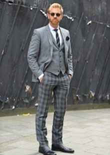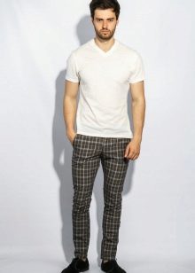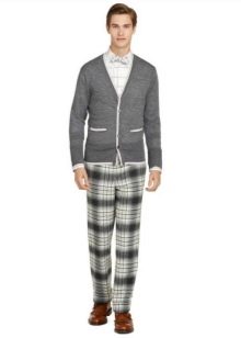 لكن، لا ينبغي تخفيض السراويل الرمادية... هذا اللون له العديد من المزايا: فهو ينسجم بشكل إيجابي مع أي ملابس ، ويؤكد ثراء نغمات العناصر "العلوية" في خزانة الملابس ، كما أنه غير مميز وعملي. يعتبر القفص الأبيض الرمادي مع إضافة خطوط سوداء مناسبًا للارتداء اليومي وفي المناسبات الاحتفالية ، ويبدو جيدًا على كل من الشباب والرجال الأكبر سنًا. للمنزل والمشي في الشوارع ، يمكنك اختيار البضائع ذات اللون الرمادي الداكن مع جيوب كبيرة أو بنطال بنمط بيجامة - تستكمل عادة بأحذية رياضية أو من جلد الغزال.