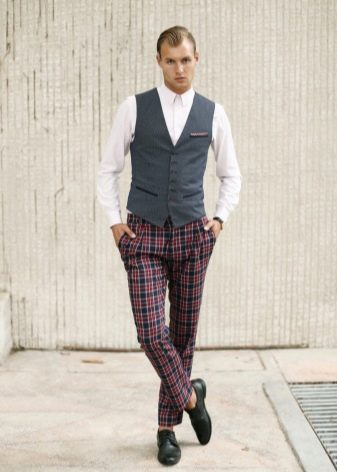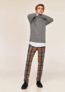 الأهم من ذلك كله ، أن القفص مناسب للشباب. إذا تحدثنا حول النموذج الكلاسيكي، فهو يشبه الزي المدرسي قليلاً ، لذلك إذا كانت خططك لا تشمل زيارة مؤسسة تعليمية ، وكانت طبيعة الحدث لا تملي قواعد لباس صارمة ، فمن الأفضل عدم ارتداء قمصان عادية تحت هذا البنطال.