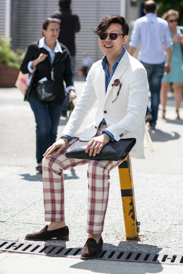 السراويل القصيرة ليست مناسبة لممثلي الفئة العمرية الأكبر سناً ؛ السراويل العريضة في رقعة الشطرنج هي الأنسب لهم.