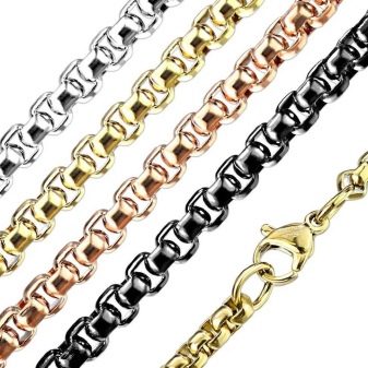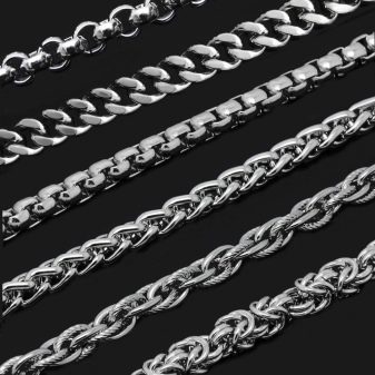 في كثير من الأحيان ، مجوهرات من من الفولاذ المقاوم للصدأ. هذه السلسلة لها خصائص علاجية ، وهي مضادة للحساسية ، علاوة على ذلك ، يمكن للجميع الوصول إليها. من هذه المواد ، يتم الحصول على مجوهرات متينة للغاية تؤكد على السمات الذكورية.