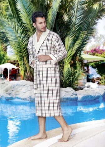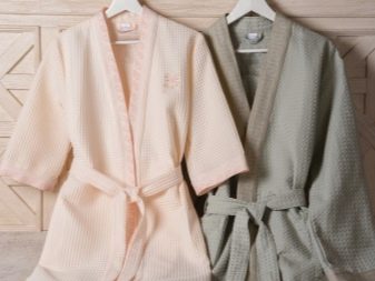 كثافة "الوافل" 140 جم / مربع. م المادة لطيفة الملمس ولا تسبب الحساسية. بالنسبة للموديلات ، يمكن أن تكون أردية القطن ذات الشيكات الممنوعة مع أو بدون طوق. منتجات مقنعين كبيرة الحجم تحظى بشعبية كبيرة. إنها جيدة بشكل خاص بعد الاستحمام. بالإضافة إلى العارضين من الإناث والذكور ، هناك منتجات للجنسين.