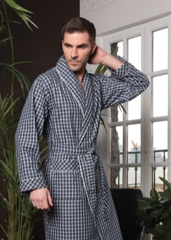 أردية الرجال القطنية مناسبة في الموسم الدافئ. تسمح المادة للجلد "بالتنفس" ولا تسبب أي إزعاج. عباءة مماثلة جيدة بعد إجراءات المياه. بالإضافة إلى ذلك ، يتيح لك مظهر المنتج (بشكل أساسي بألوان داكنة) إضافة وحشية وجاذبية لصورة الذكر.