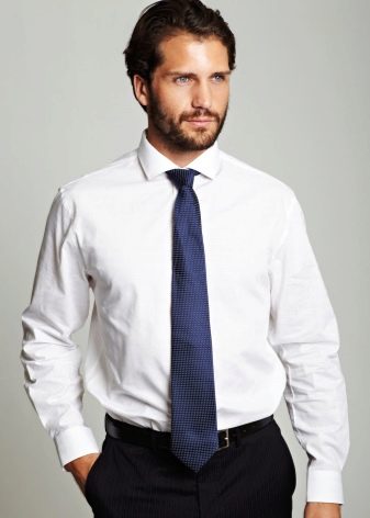- نوع طوق القميص والعرض. يُعتقد أنه لكي تبدو ربطة العنق متناغمة مع الزي العام ، يجب إعطاء الأفضلية لطوق بزاوية كبيرة بين نهاياته (يجب ألا يقل هذا الرقم عن 130 درجة). إذا كان لديك مثل هذا القميص ، فيمكنك اختيار أي خيارات للعقد (سواء كانت أكبر أو مضغوطة). يجب أن يؤخذ في الاعتبار أنه إذا كانت زاوية الياقة أقل من 130 درجة ، فمن الأفضل أن تعطي الأفضلية للعقد الصغيرة والبسيطة. الأمر نفسه ينطبق على عرض الياقة: لكي تبدو العقدة الكبيرة جميلة ، يجب ألا تقل عن 9-10 سم.