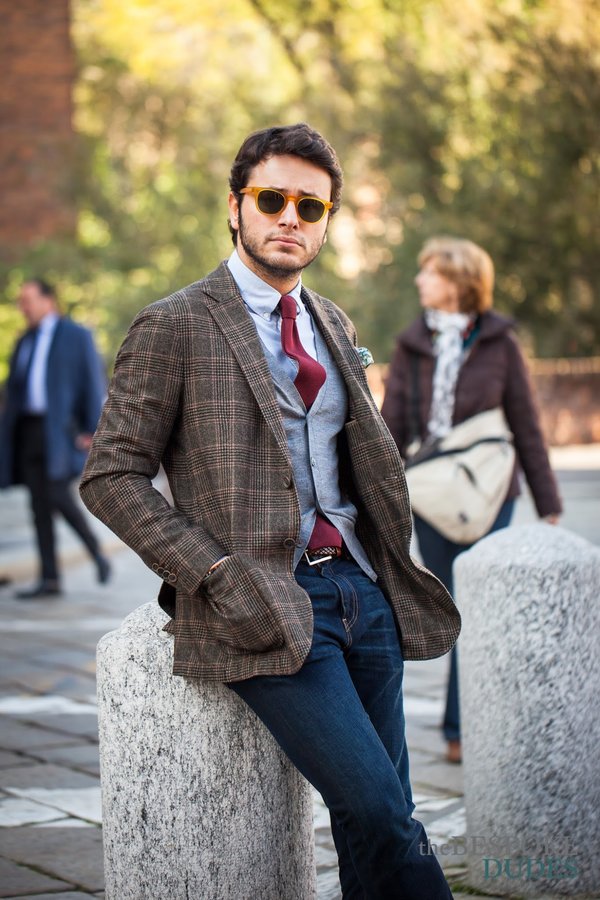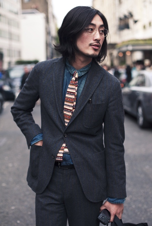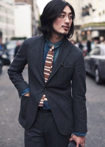 - مزيج أصلي من بدلة وقميص بلون غير قياسي وربطة عنق أصلية مناسبة لممثلي المهن الإبداعية (على سبيل المثال ، المصممين أو الصحفيين).