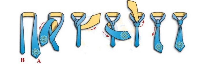 تعتبر هذه العقدة واحدة من أبسط العقدة ، وبالتالي فهي تحظى بشعبية بين الشباب الذين يتعلمون فقط ربط العلاقات. نضع الحافة العريضة 30 سم أقل من الحافة الضيقة. بعد ذلك ، نعبرهم من الداخل ونقوم بضربة واحدة ونشكل جيبًا خاصًا. الخطوة التالية هي زرع حافة عريضة تحت الحلقة من الداخل ، مروراً بها عبر الجيب.