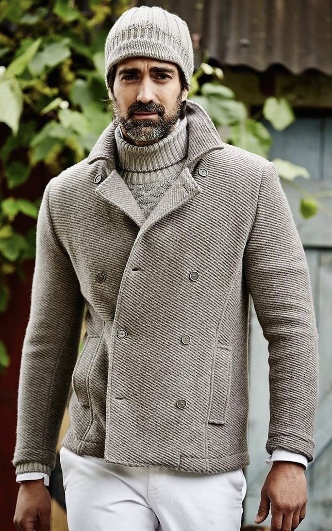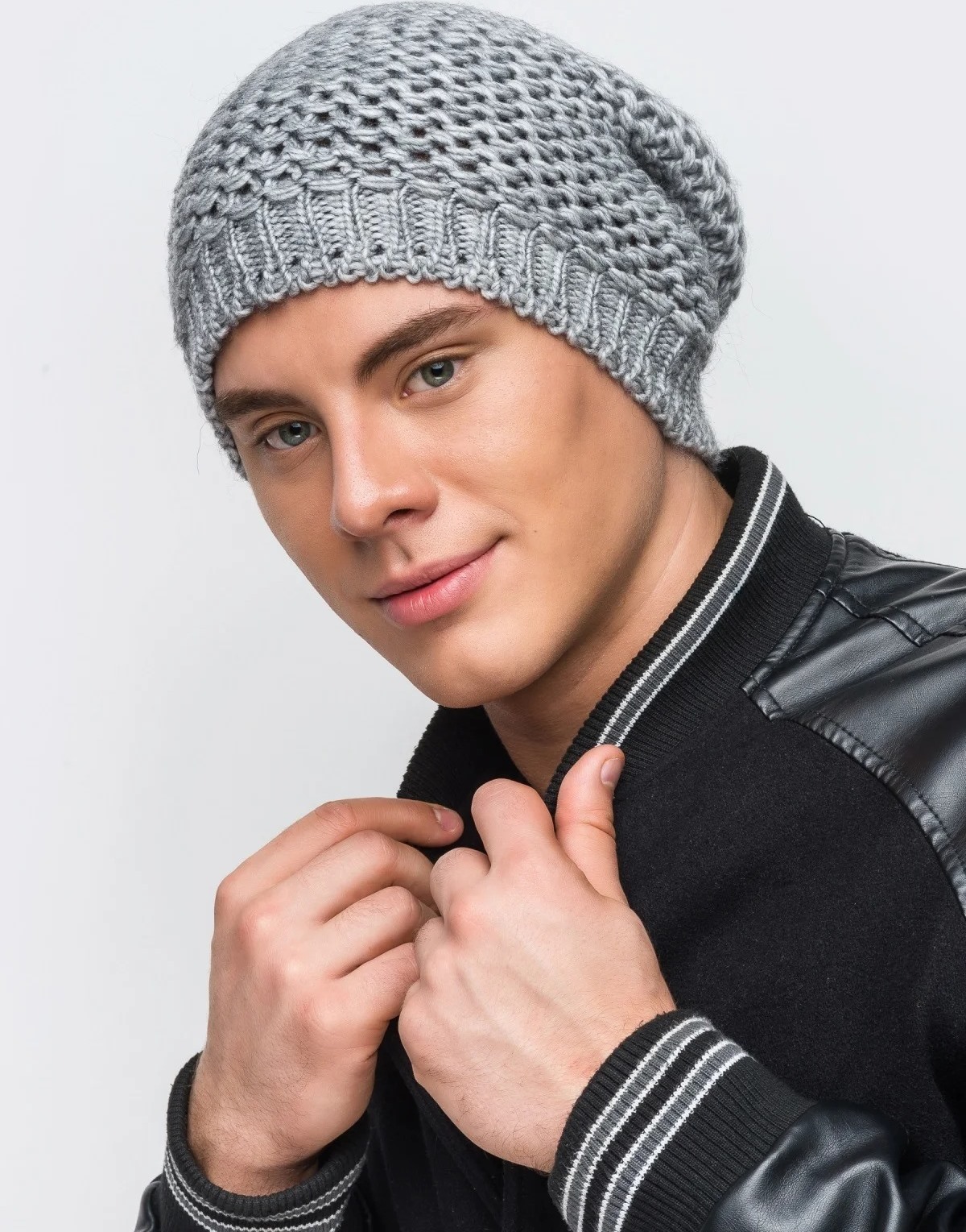 تتناسب قبعات Beanie بشكل جيد مع خزانة ملابس الرجال الذين يفضلون الأسلوب الرياضي أو غير الرسمي. في هذه الحالة ، تعتبر القمصان الجيرسيه الناعمة بدون مطبوعات براقة خيارًا رائعًا. يجب على المعجبين الأكثر احترامًا لهذا النمط من القبعات الانتباه إلى قبعة صغيرة من الكشمير وصوف ميرينو - فهي تتناسب تمامًا مع صورة رجل الأعمال. يرتدي المصممون في فئة 40+ مثل هذه القبعات المقترنة بلحاف محبوك أو حريري لتتناسب معه.