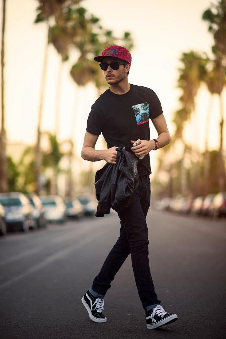 - قبعة بيسبول بقمة مستقيمة - غطاء للرأس يحظى بتقدير كبير لمغني الراب. في هذا المظهر ، يتم استكمال القميص الكاكي بطبعة مطابقة للأسلوب بنجاح كبير بغطاء أزرق. الأحذية الرياضية وشورتات الدنيم ذات العلامات التجارية أكثر من مناسبة هنا. سيكون قميص من النوع الثقيل الغامق مفيدًا أثناء هطول الأمطار في الصيف.