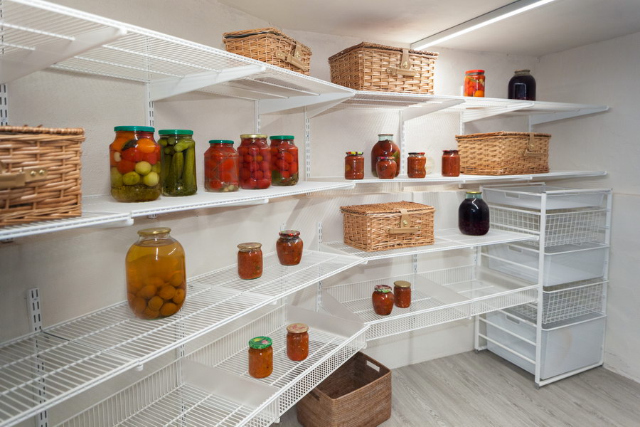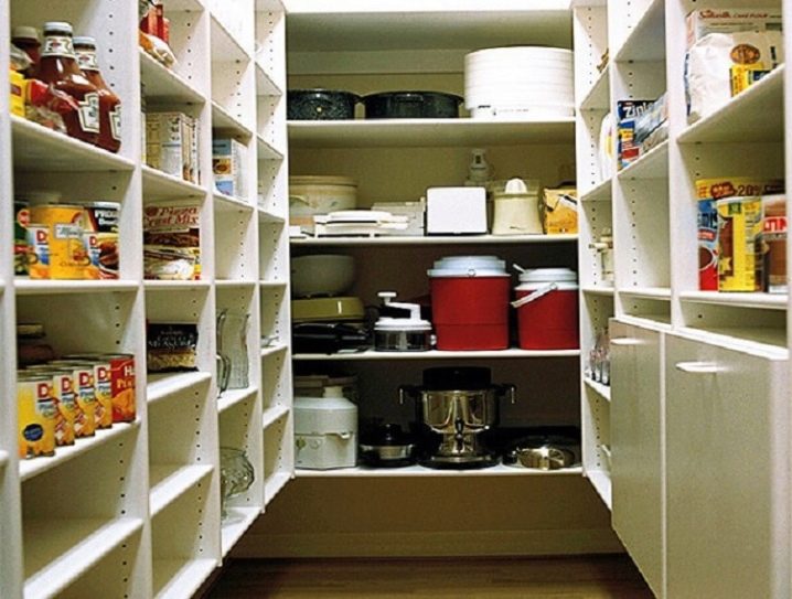 وبعض الأمثلة التوضيحية التي تسمح لك برؤية شكل حجرة المؤن للعلب التي تحتوي على مواد محفوظة أو أشياء أخرى - تبدو غرفة خاصة كاملة.