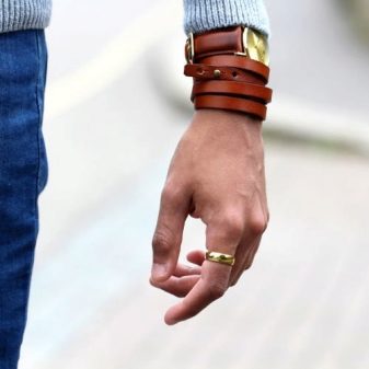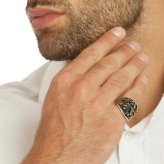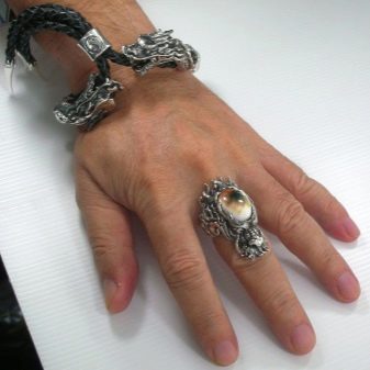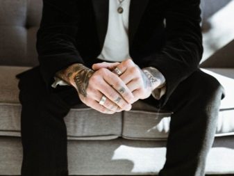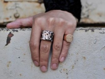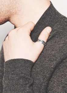 - حلقات المصمم ذات الأشكال غير العادية تلفت الانتباه إلى أيدي الرجال. يمكن أن يصبح هذا الملحق "ناطقًا" ، في إشارة للأشخاص المحيطين به أن مالكه شخص غير عادي. يمكن استكماله بمجوهرات أخرى من مجموعة العلامة التجارية: سوار ، أزرار أكمام ، دبوس ربطة عنق. خاتم المصمم لن يتسامح مع "المنافسة" ، لذلك يجب أن تزين أصابع الرجل وحدها. حتى مع "الاشتباك" من غير المرغوب فيه الجمع بينه وبينه.