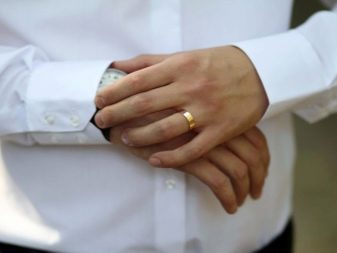 - يجب على المتزوجين الذين يرتدون خاتم الزواج الالتزام بالقاعدة التالية: لا تضع حلقات أخرى في نفس اليد. من ناحية أخرى - يمكنك ، ولكن ليس أكثر من واحد. ومن المستحسن أن يتم تصميمه بنفس أسلوب "الاشتباك" ، أو على الأقل مصنوع من نفس المعدن.