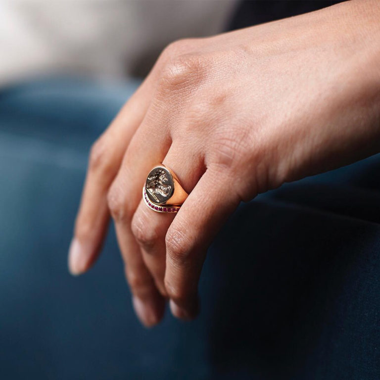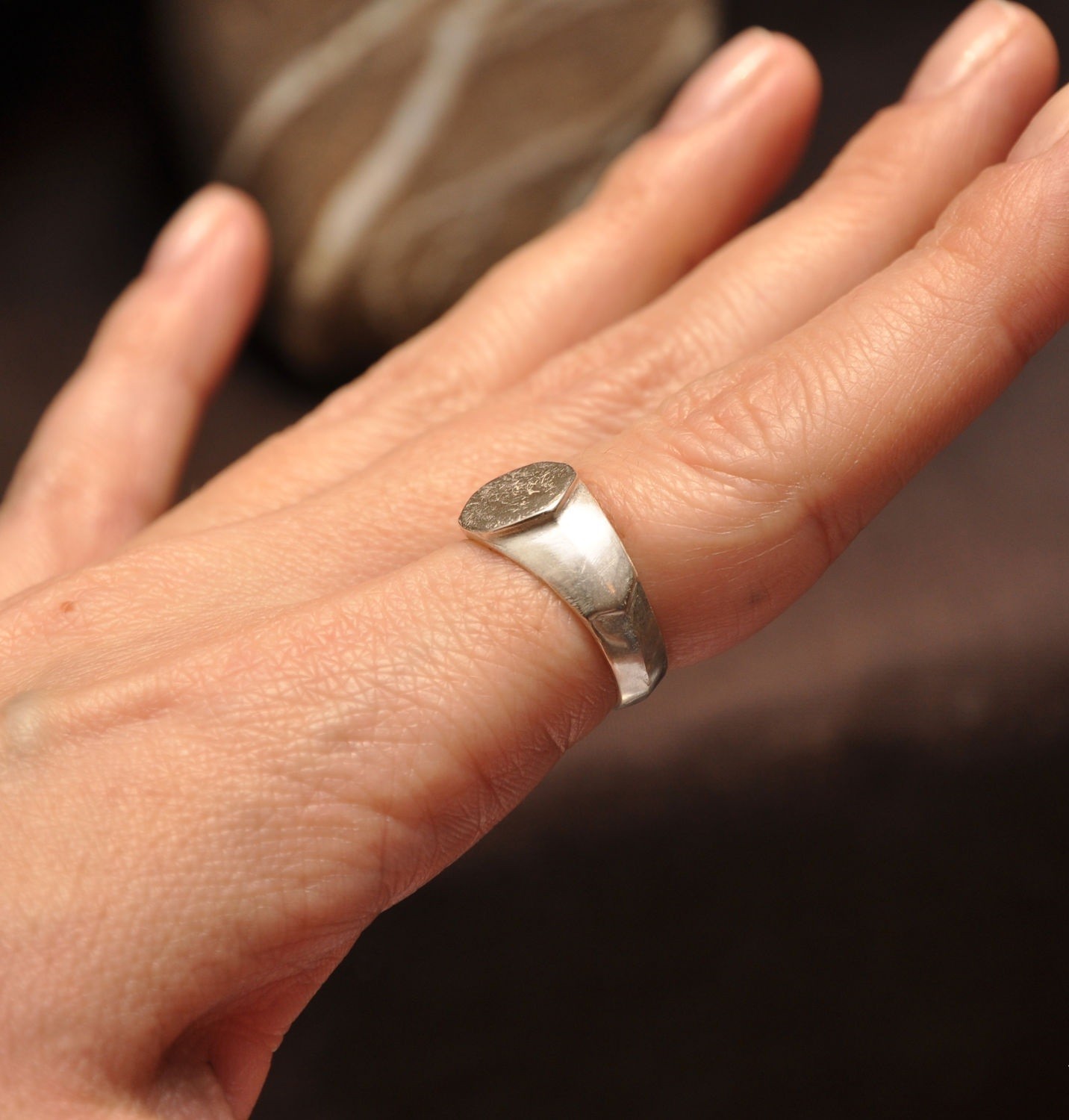 - إذا كنت من عشاق الخاتم ، فحاول ارتدائها إما على إصبعك الصغير أو إصبعك الدائري. - الطريقة التي تم قبولها بها في وقت سابق ، عندما كانوا لا يزالون يؤدون وظيفة الطباعة.