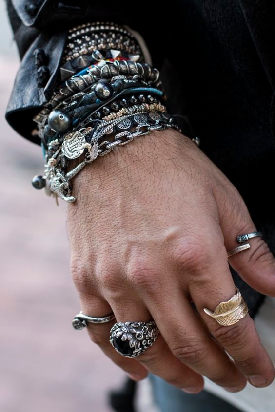 - يعد الجمع بين الألوان والالتزام بنمط واحد للصورة أمرًا مهمًا للغاية. سيبدو الخاتم الذهبي مع الياقوت غريبًا على الأقل على راكب الدراجة النارية في سترة جلدية بمسامير معدنية فضية. والحلقة ذات الجمجمة لن تكون متناغمة مع البدلة الكلاسيكية الصارمة. عند الجمع بين المعادن ذات الألوان المختلفة ، كن حذرًا: لقد ولت الأيام التي كان فيها ارتداء الفضة بالذهب يعتبر سلوكًا سيئًا ، ولكن عند رسم مثل هذا الترادف ، يجب أن تكون حريصًا حتى لا تنزلق إلى الذوق السيئ.