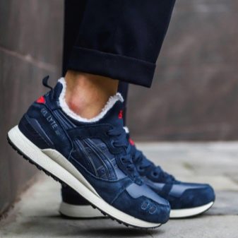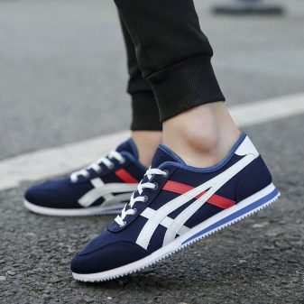 غالبًا ما يتم استخدام إدخالات جلدية في صناعة الأحذية الرياضية الرجالية للعلامة التجارية. يمكنك أيضًا العثور في ترسانة Asics على مثل هذه المنتجات المصنوعة بالكامل من جلد الغزال المخملي أو الجلد الناعم تمامًا.