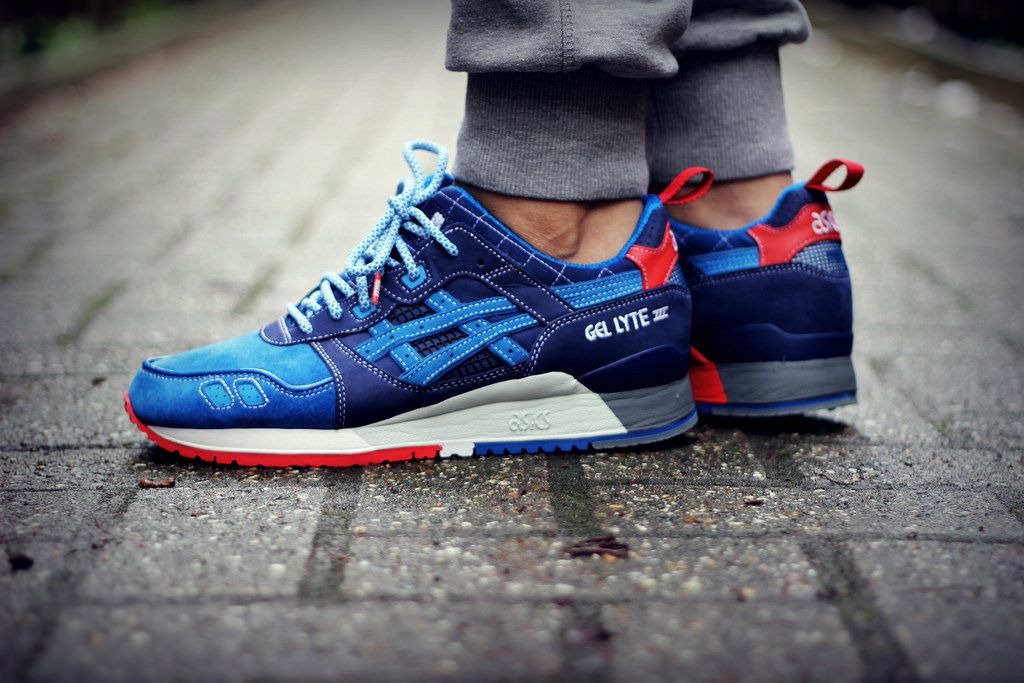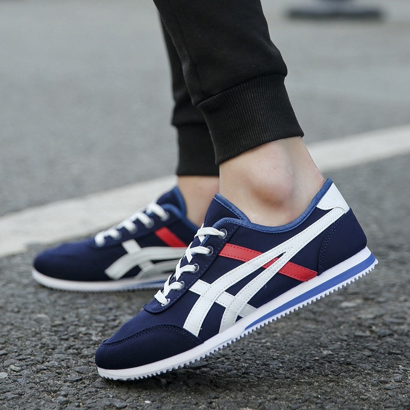 - أبيض مع خطوط حمراء وزرقاء - نظام الألوان الشائع ، الذي يتم تطبيقه على العديد من طرازات أحذية أسيكس الرياضية ، يبدو جذابًا ، وليس مبهرجًا للغاية ، ومثاليًا لمظهر الأسلوب الرياضي ؛