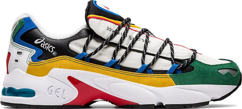 - متعدد الألوان - يستخدم مصممو Asics مجموعات ألوان مختلفة ، على سبيل المثال ، يبدو طراز Kayano 5 OG مشرقًا وديناميكيًا ، وله خلفية بيضاء مع خطوط متشابكة باللون الأخضر والأحمر والأزرق والأسود ؛