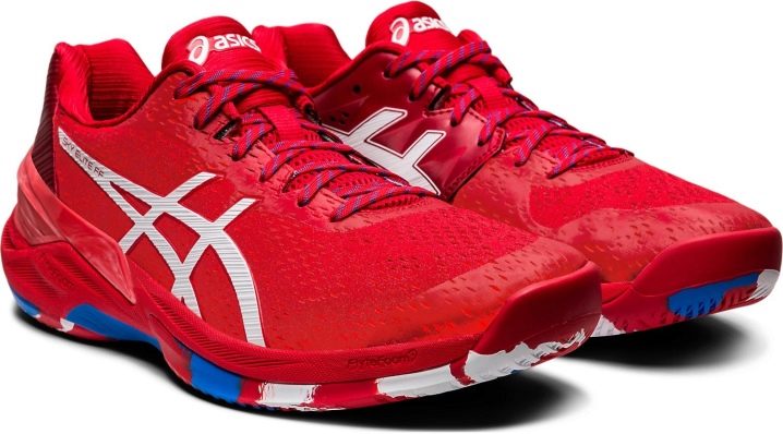 النسبة الرئيسية من أحذية اسيكس للكرة الطائرة مصنوعة بألوان زاهية وغنية. هناك قطع جريئة وجريئة ، مستدامة في ظلال حمضية وتكملها خطوط مميزة في النمط التقليدي للشركة.