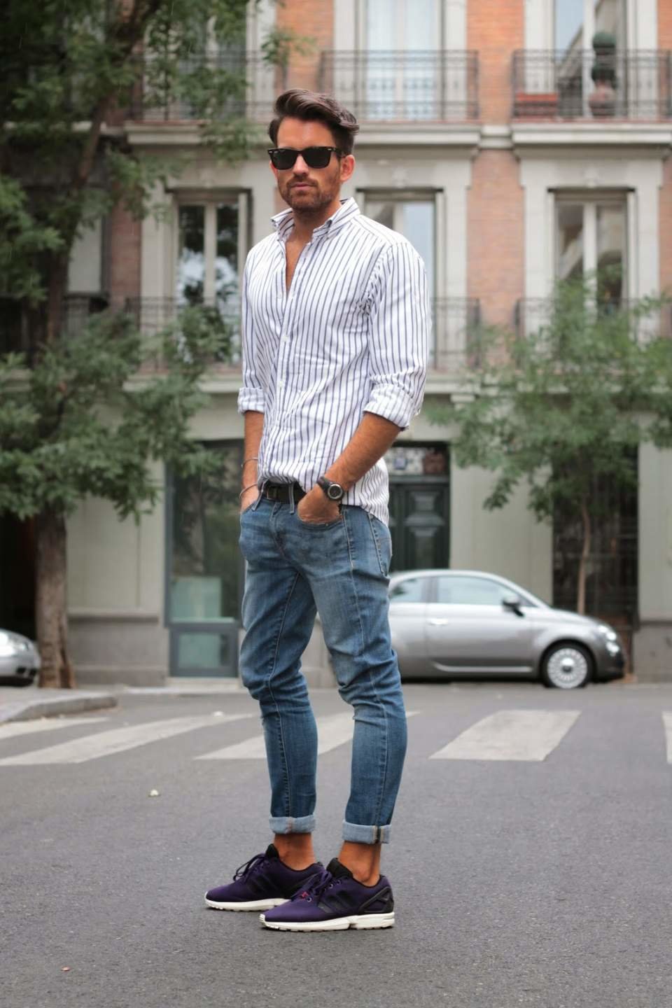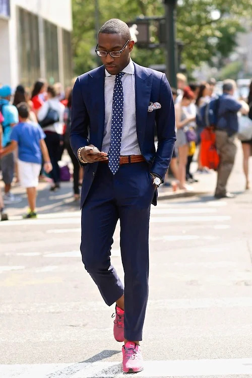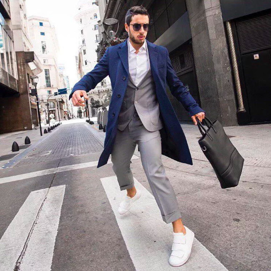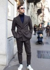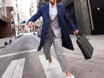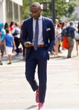 - يمكن الجمع بين الأحذية الرياضية الأنيقة مع بدلة عمل... في هذه الحالة ، من الضروري اختيار الأحذية ذات اللون الكلاسيكي.