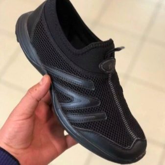 - للصيف. حذاء رياضي خفيف الوزن وقابل للتمدد مصنوع من مواد تسمح بمرور الهواء. النماذج عالية الجودة ليس لها وزن عمليًا. يجب أن تكون هذه الأحذية حرة في تمرير الهواء للراحة أثناء الارتداء.