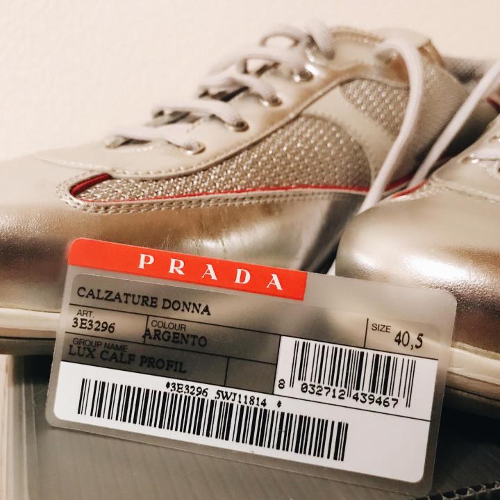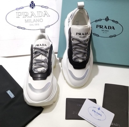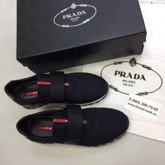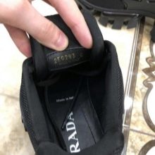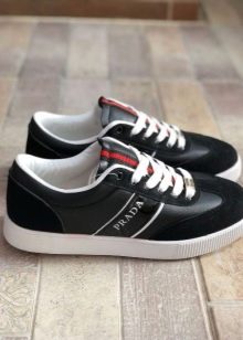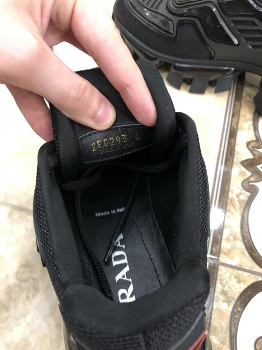 عند اختيار الأحذية في المتاجر ، يجب أن يؤخذ في الاعتبار ذلك أحذية رياضية أصلية للرجال من هذه العلامة التجارية لها نعال قابلة للإزالة مع نقش PRADA ، دائمًا بأحرف كبيرة. وأيضًا اسم العلامة التجارية موضح على ملصق المنتج. تحته (اسم العلامة التجارية) يوجد نقش «صنع في ايطاليا ". يجب أن يكون شعار الشركة على شكل مثلث مقلوب موجودًا على لسان الحذاء الرياضي أو في منطقة الكعب.