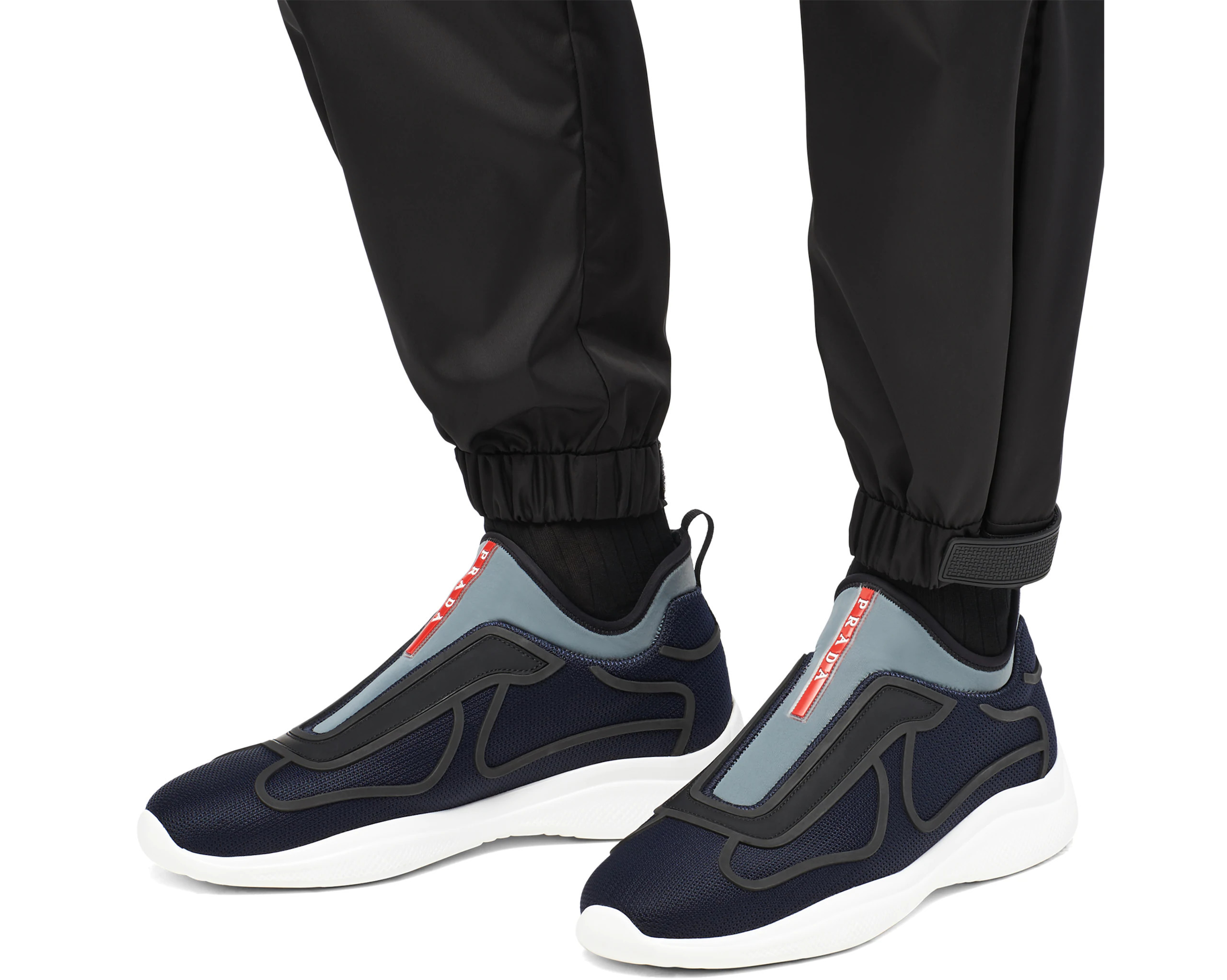 حذاء رياضي ماركة Prada مثالي للرجال مع أسلوب حياة نشط. يتيح لك تعدد استخدامات هذا الحذاء استخدامه كعنصر من عناصر المعدات للركض واللياقة البدنية وتمارين القوة.