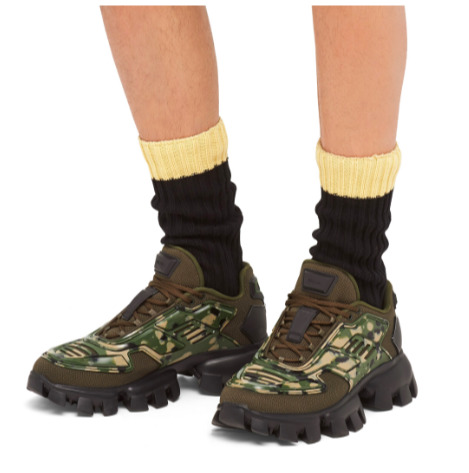 في صناعة الأحذية الرياضية الرجالية ، تستخدم ماركة Prada مواد مثل: