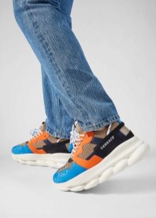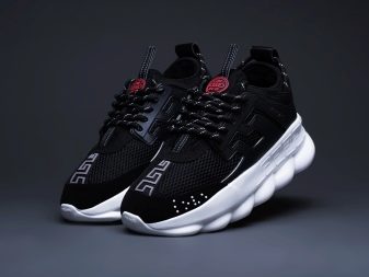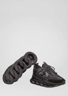 تم تصميم الحذاء الرياضي للجري بأسلوب فيرساتشي المميز. النعل ، بالإضافة إلى نمط السلسلة ، له نمط متعرج. الأحذية مثيرة للاهتمام مع إدخالات ضخمة من النيوبرين بنسيج التمساح والأربطة ، نهاياتها مصنوعة من المطاط.