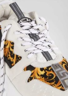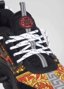أحذية فيرساتشي الرياضية الشهيرة (يشار إليها أحيانًا بالأحذية الرياضية ، مما يعني أحذية جميلة ولكنها غير مناسبة للأحداث الرياضية) تأتي فيرساتشي في مجموعة متنوعة من التصاميم. على جسم الحذاء ، يمكنك رؤية التفاصيل الأصلية (التي يجب أخذها في الاعتبار عند الاختيار ، حتى لا تشتري مزيفة): نمط تعرج يوناني ، خياطة متناقضة وإدراج نيوبرين لامع.