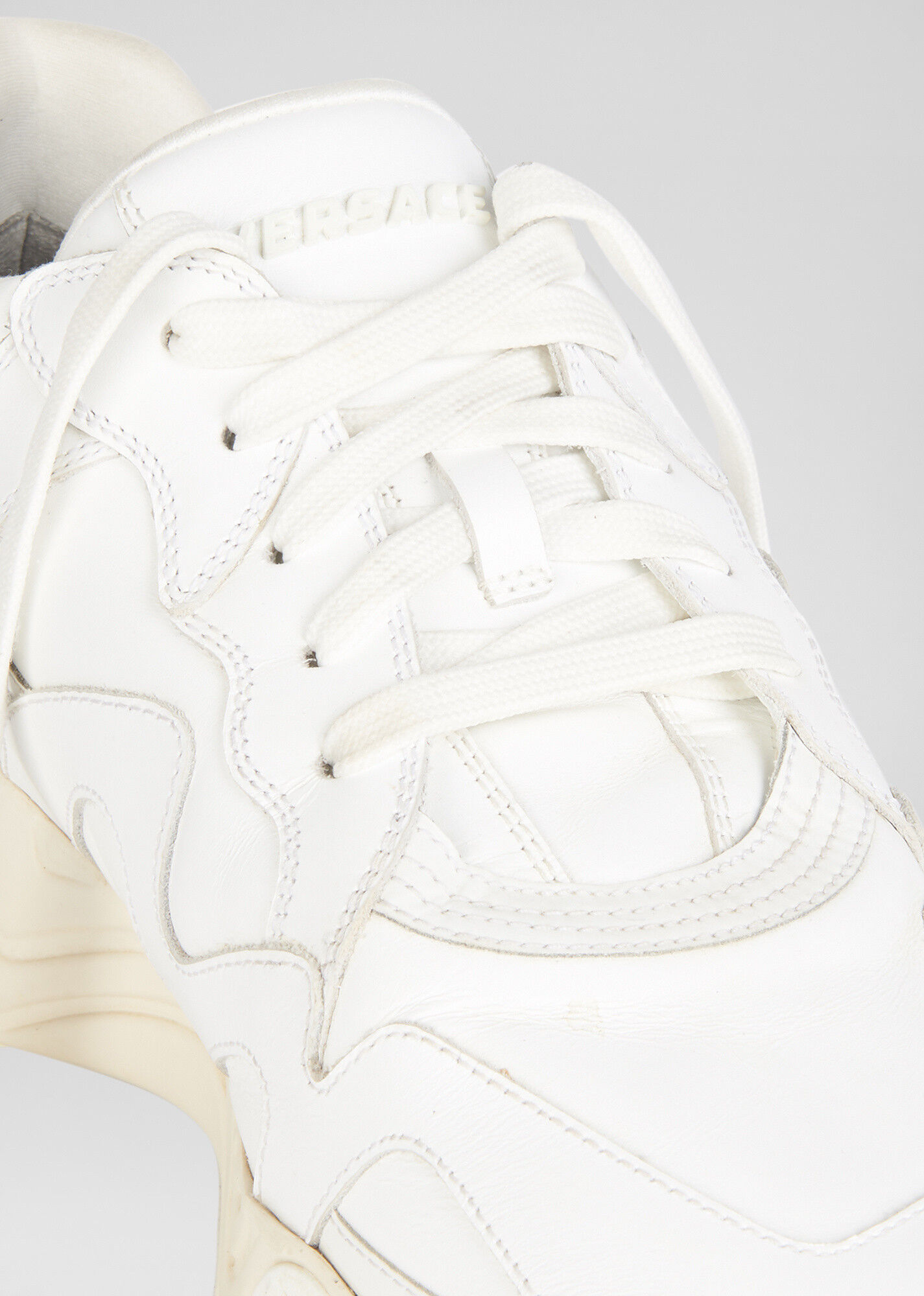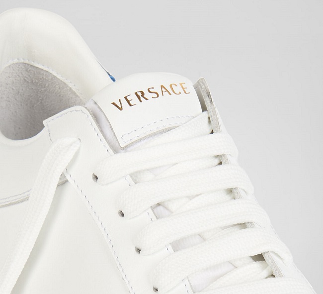 يوجد شريط جلدي في الأمام لمنع كدمات الأصابع في حالة الاصطدام ، كما أنه يزيد من متانة الحذاء.ي. تتميز أحذية Versace الرجالية بنعل خارجي مصبوب من مادة TPU لتوفير مزيد من الدعم أثناء المشي ، وهي على شكل سلسلة. ستساعدك ميزات الأحذية الرياضية على تجنب شراء حذاء مزيف.
