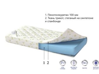 - نموذج الإسفنج Standart 1 عبارة عن مرتبة بدون زنبرك يمكن طيها إذا لزم الأمر. هذا النموذج مناسب للشراء سواء للمنزل أو للترفيه في البلد. نظرًا لحقيقة أن المرتبة يمكن طيها بشكل مضغوط ، يمكن نقلها دون أي مشاكل. يمكن أن يتحمل النموذج حمولة تصل إلى 120 كجم.