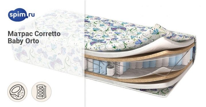 - من بين نماذج الأطفال ، يجب الانتباه إلى مرتبة Baby Orto لتقويم العظام. وهي مجهزة أيضًا بكتلة من الينابيع المستقلة ، بحيث يتم توزيع وزن الطفل أثناء الراحة على المنتج بشكل متساوٍ قدر الإمكان. يستخدم حشو جوز الهند الطبيعي ، الذي لا يشتهر بقوته فحسب ، بل أيضًا بمتانته. بالإضافة إلى جوز الهند ، تحتوي التركيبة على Struttoform ، وهي مادة آمنة وصديقة للبيئة مع إضافة ألياف القطن.