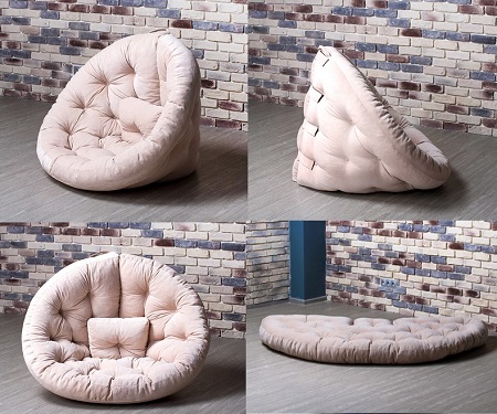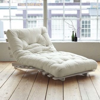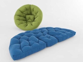 لا تحتوي هذه النماذج من المنتجات القابلة للتحويل على قاعدة إطار في التصميم. تتميز الأصناف المبطنة بمستوى عالٍ من النعومة والراحة. في الواقع ، هذا حشو مخيط بقماش على كلا الجانبين. يمكن تحويل نموذج المرتبة هذا إلى كرسي بذراعين مريح للغاية أو أريكة مدمجة. غالبًا ما تكون مرتبة بدون إطار على شكل مستطيل أو دائرة.