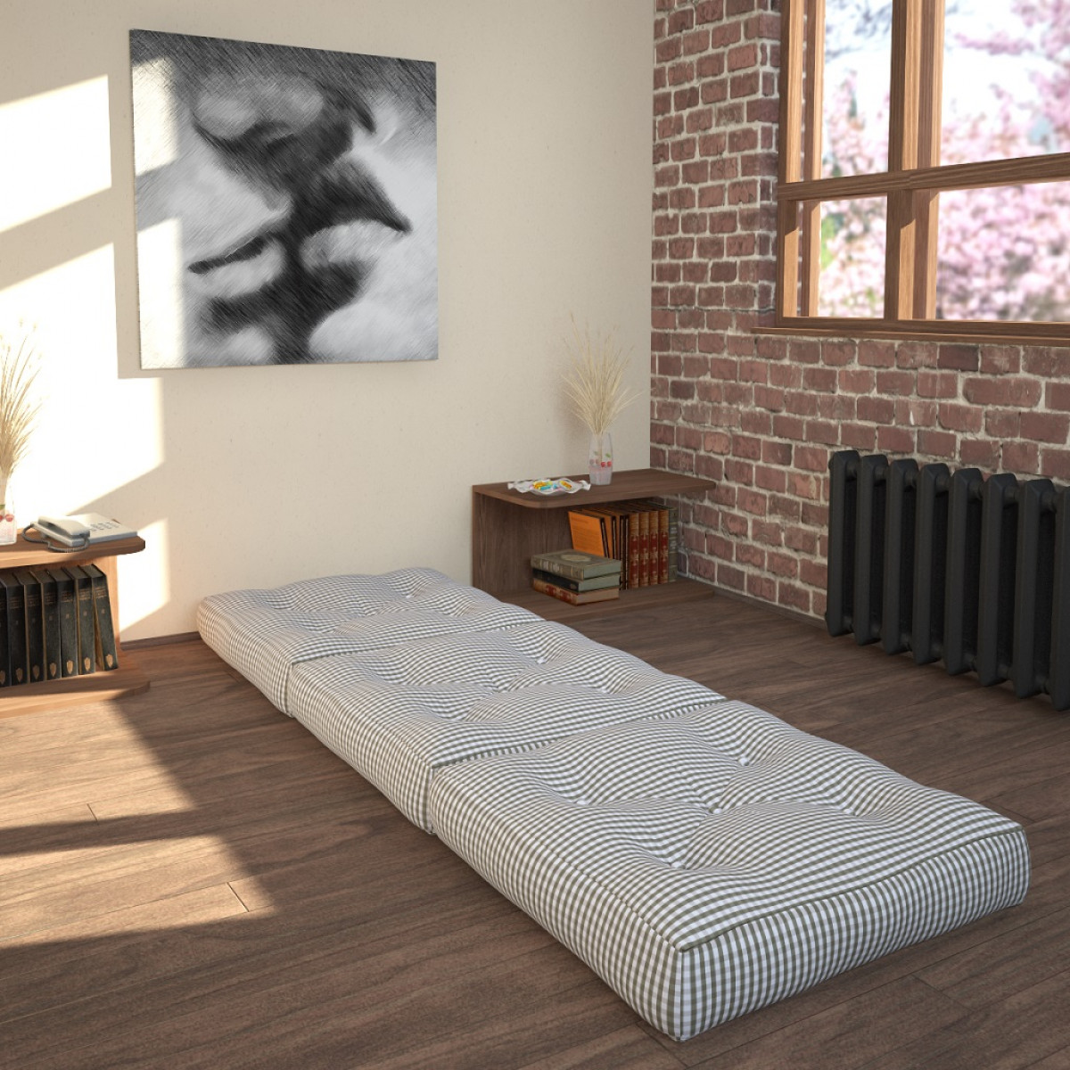 بمجرد أن تتكشف المرتبة القابلة للطي ، فإنها تتحول إلى مكان نوم كامل. هناك نماذج زنبركية وعديمة الزنبرك ، تختلف في درجة الصلابة والحجم والسماكة.