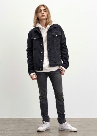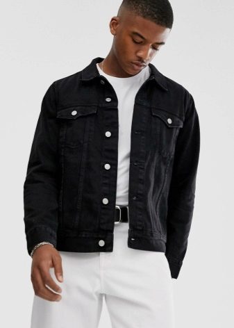 السترات السوداء الكلاسيكية المصنوعة من الدنيم تجذب انتباه الشباب والرجال الناضجين. الظلال الداكنة قريبة من عشاق النمط الكلاسيكي. ومع ذلك ، فإن الرجال المتأصلين في نهج إبداعي لاختيار خزانة الملابس لن يتخلوا أيضًا عن الجينز الأسود.
