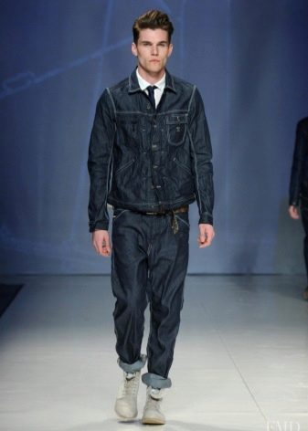 ستُستكمل سترة الدنيم السوداء الأنيقة بأخفاف الموكاسين الأنيقة أو أحذية أوكسفورد بألوان سرية (أسود أو أزرق أو بني). أيضا ، المتسكعون والبراري في وئام تام معها. إذا فضل الرجل أسلوبًا رياضيًا في الملابس ، فيمكنه الجمع بين الجينز والأحذية الرياضية أو الأحذية الرياضية.