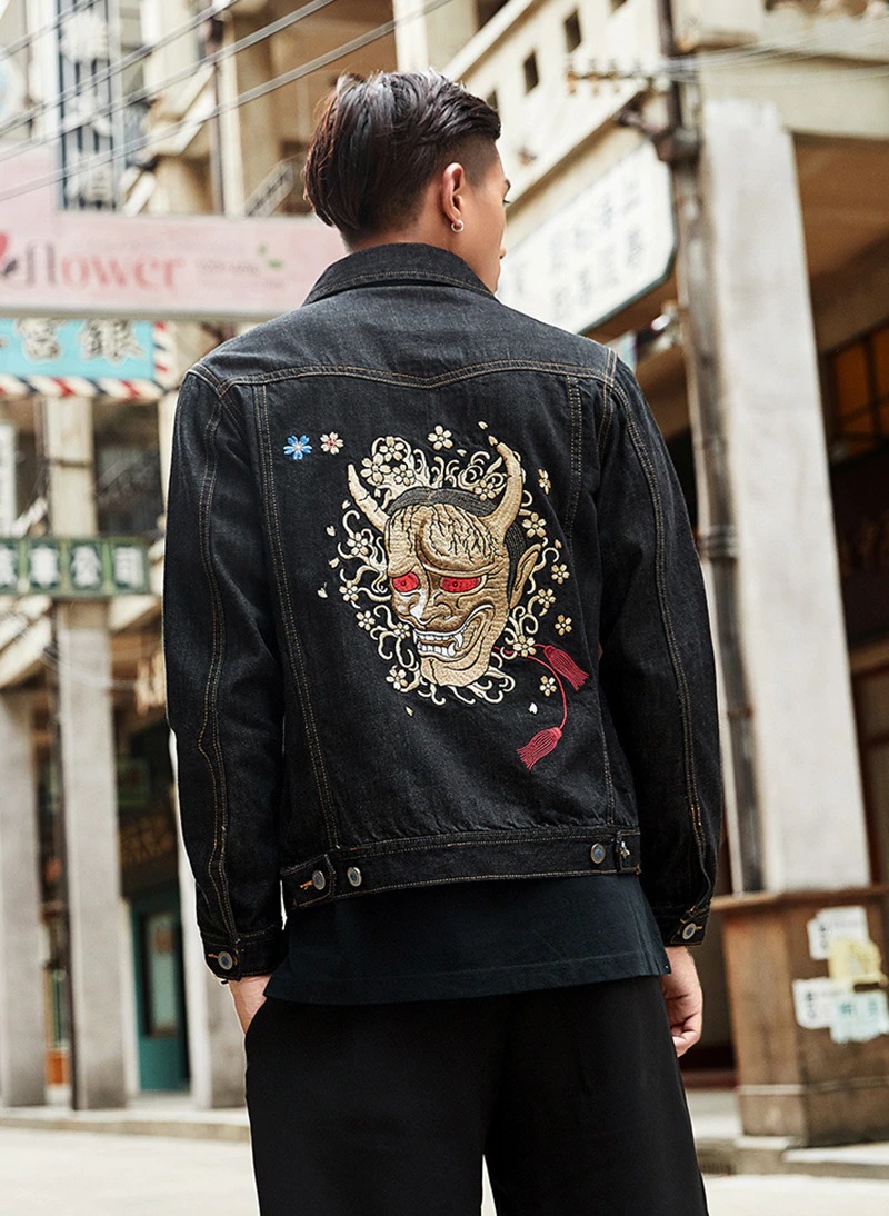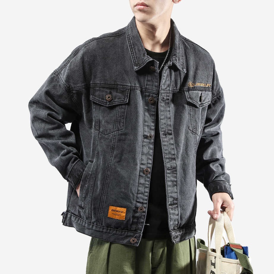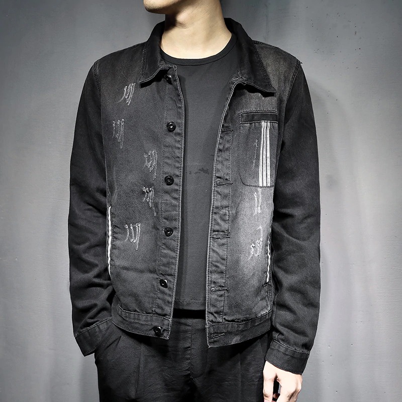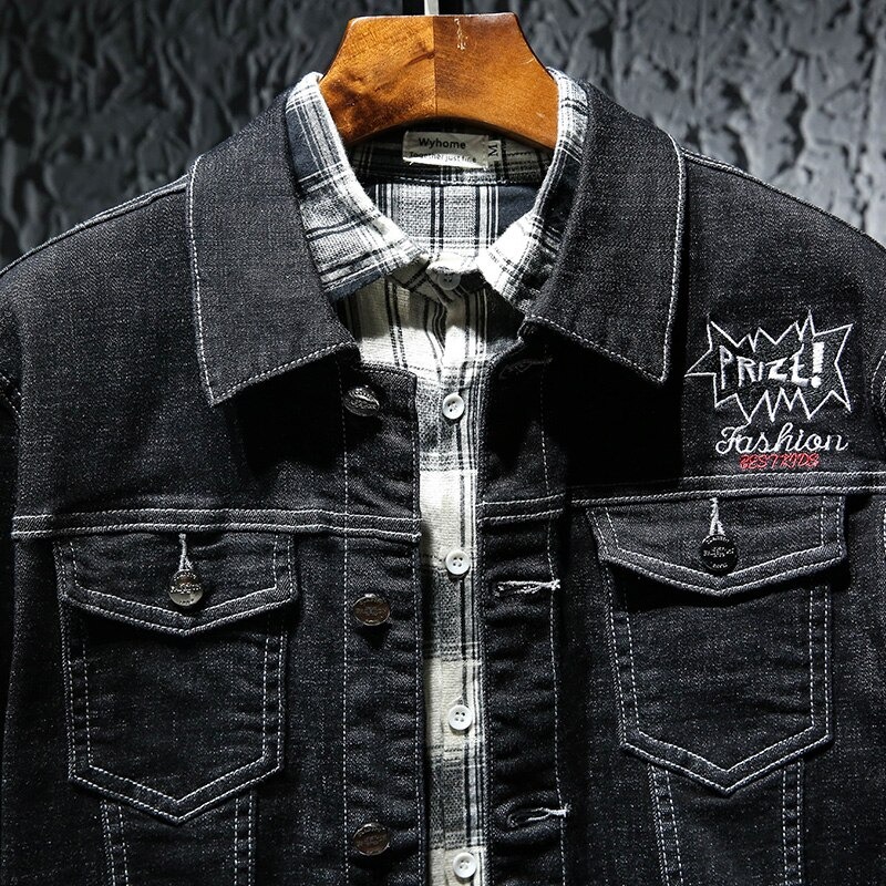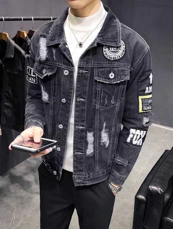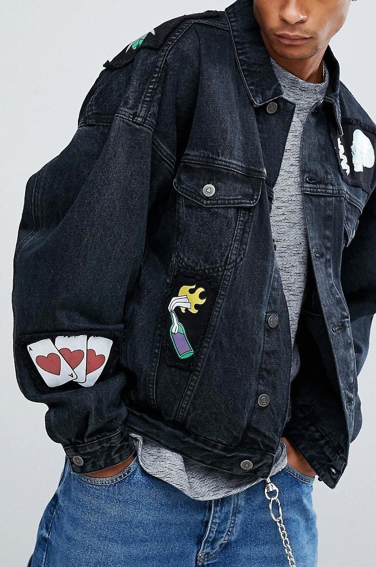 سترات الدنيم العصرية باللون الأسود ، والمزينة بدبابيس وخطوط ملونة ، مناسبة لجيل الشباب.