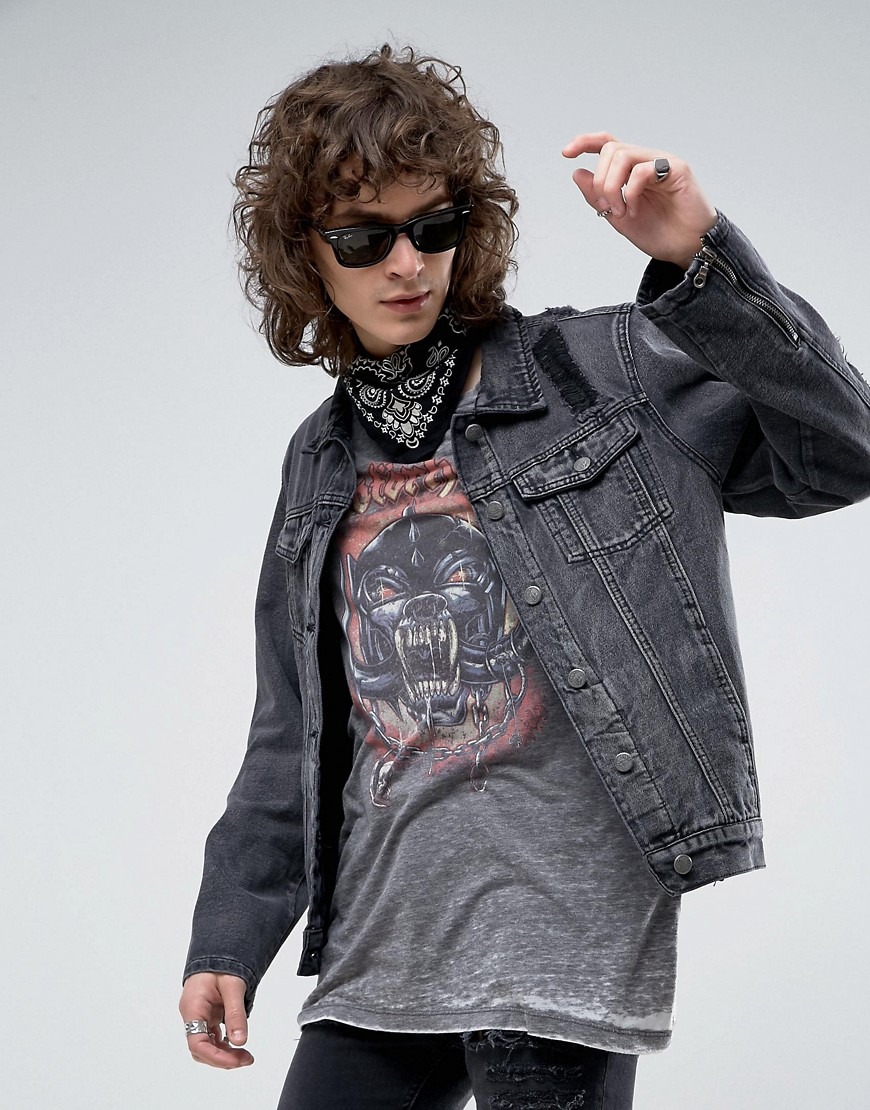 من الفوارق المهمة أيضًا اختيار الحزام عندما يتعلق الأمر بنموذج قصير من سترة الدنيم. الخيار المثالي هو منتج جلد أصلي. المجوهرات الأنيقة لا تقل أهمية ، والتي ستؤكد فقط على صورة رجل وسيم شجاع.