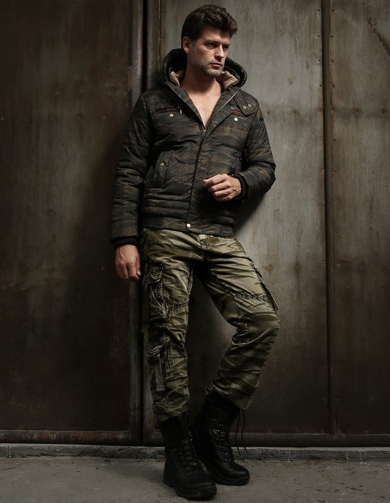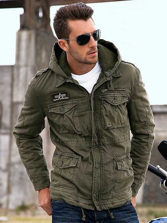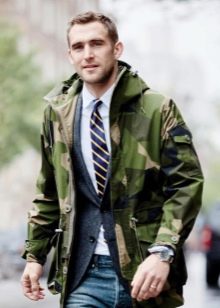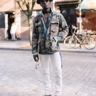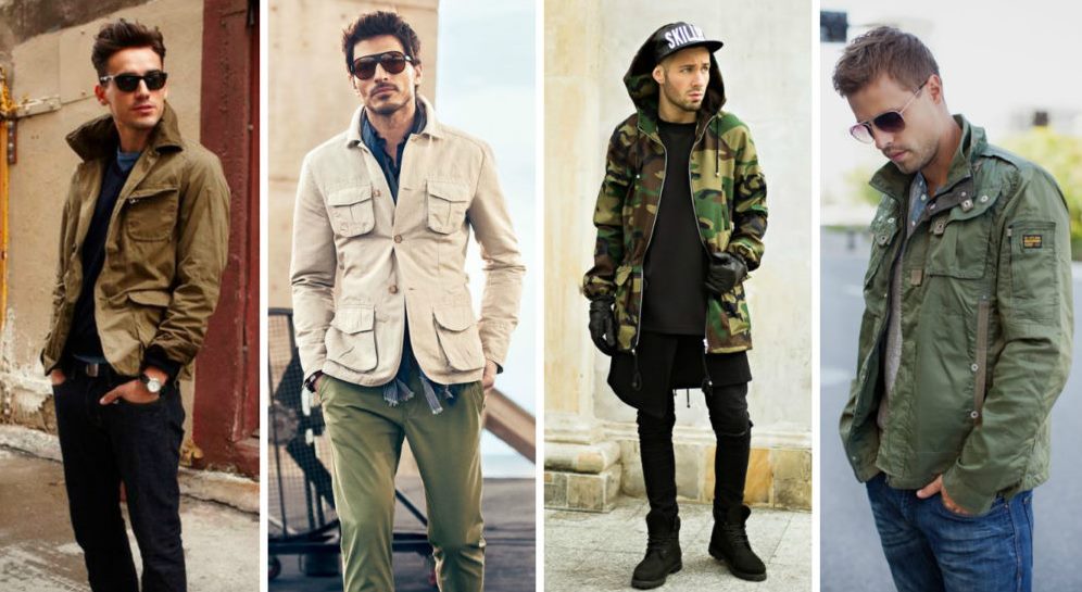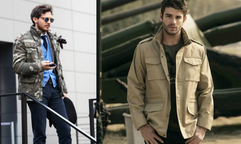 عادة ما يكون للسترات ذات الطراز العسكري للرجال قص غير ظاهر وألوان مقتضبة. يتم استخدام العديد منهم بالفعل في عمل وحدات الجيش. نماذج أخرى تحتفظ بروح الماضي ، فقط تشبه عن بعد الشكل الأصلي للنموذج العسكري.