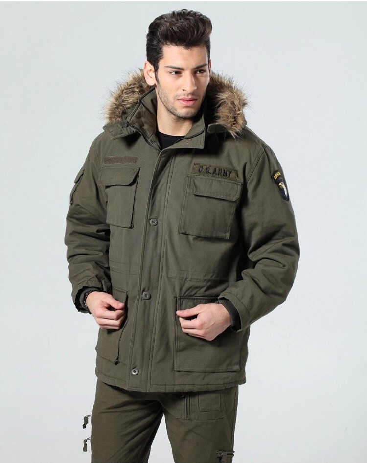 تحظى السترات الطويلة ذات الطراز العسكري بشعبية بين المسافرين والمتنزهين والمتنزهين. إنها مثالية للرجال الذين يعملون في الهواء الطلق. مع الاختيار الصحيح للطول ، لا يمكنك الشعور بعدم الراحة أثناء القيادة أو عربة الثلج.